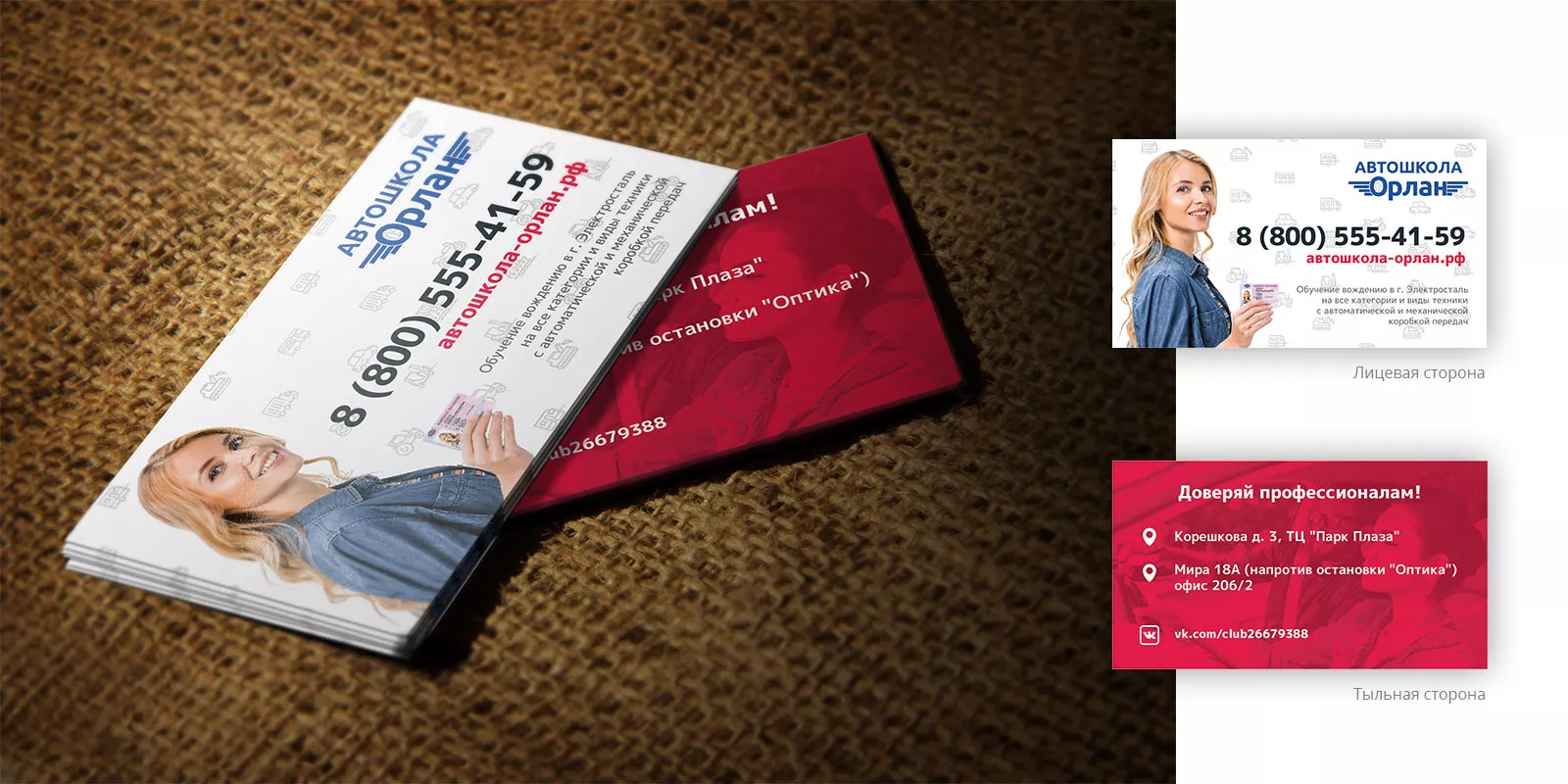 Разработка промо-визиток для автошколы «Орлан» в Комсомольске